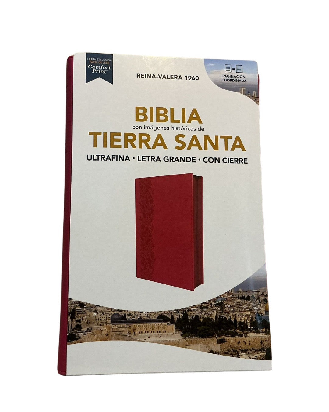 Una Reina-Valera 1960 de hermoso diseño con cierre, una magnífica colección de imágenes de Tierra Santa y en el formato ultrafino fácil de llevar que ya amas.La traducción RVR60 es la más popular en español. La Santa Biblia Reina-Valera 1960 Ultrafina es ideal para llevar a la iglesia, el estudio de la Palabra, para el uso devocional o para regalar.Visita el Huerto de Getsemaní, maravíllate con el Monte Tabor y descubre el rio Jordán con la Biblia Reina - Valera con Imágenes históricas de Tierra Santa.Editorial Vida presenta la Biblia con imágenes históricas de Tierra Santa, una edición en formato ultrafino con el texto íntegro de la RVR60; acompañado de un resumen gráfico de la Biblia que ofrece un panorama completo de las escrituras, además de un plan de lectura, amplia concordancia, palabras de Cristo en rojo y la exclusiva tipografía fácil de leer Comfort Print(R). Qué ofrece esta Biblia? El texto íntegro de la traducción Reina - Valera 1960 Exclusivo tipo de Letra Comfort Print de Editorial Vida Texto bíblico versificadoInserto de 8 páginas con una selección de imágenes de Tierra SantaFormato de texto a dos columnas Encuadernación en Leathersoft con cierre2 cintas marcadoras de satín Palabras de Jesús en color rojo Resumen gráfico de la BibliaPlan de LecturaConcordanciaReina-Valera
